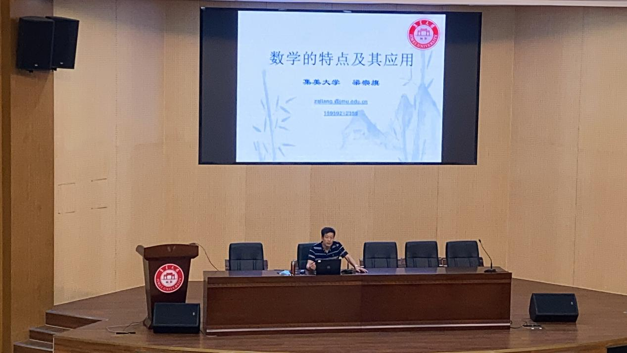 会议伊始,朱荣坤就本院数学系的专业历史、课程设置、专业培养目标与考研就业等方向对数学系专业进行详细介绍,列举身边的数学,激发同学学习兴趣。朱荣坤提出“每个人是自己命运的设计师”,希望各位同学能够做好规划,有理想,有目标,有毅力。梁宗旗则与同学们一同追溯数学史的发展并详细介绍了若干著名数学家,为同学们树起标杆,同时强调了学好数学的重要性,带领同学们一起领略数学领域的博大精深,进一步介绍“数学的美”。