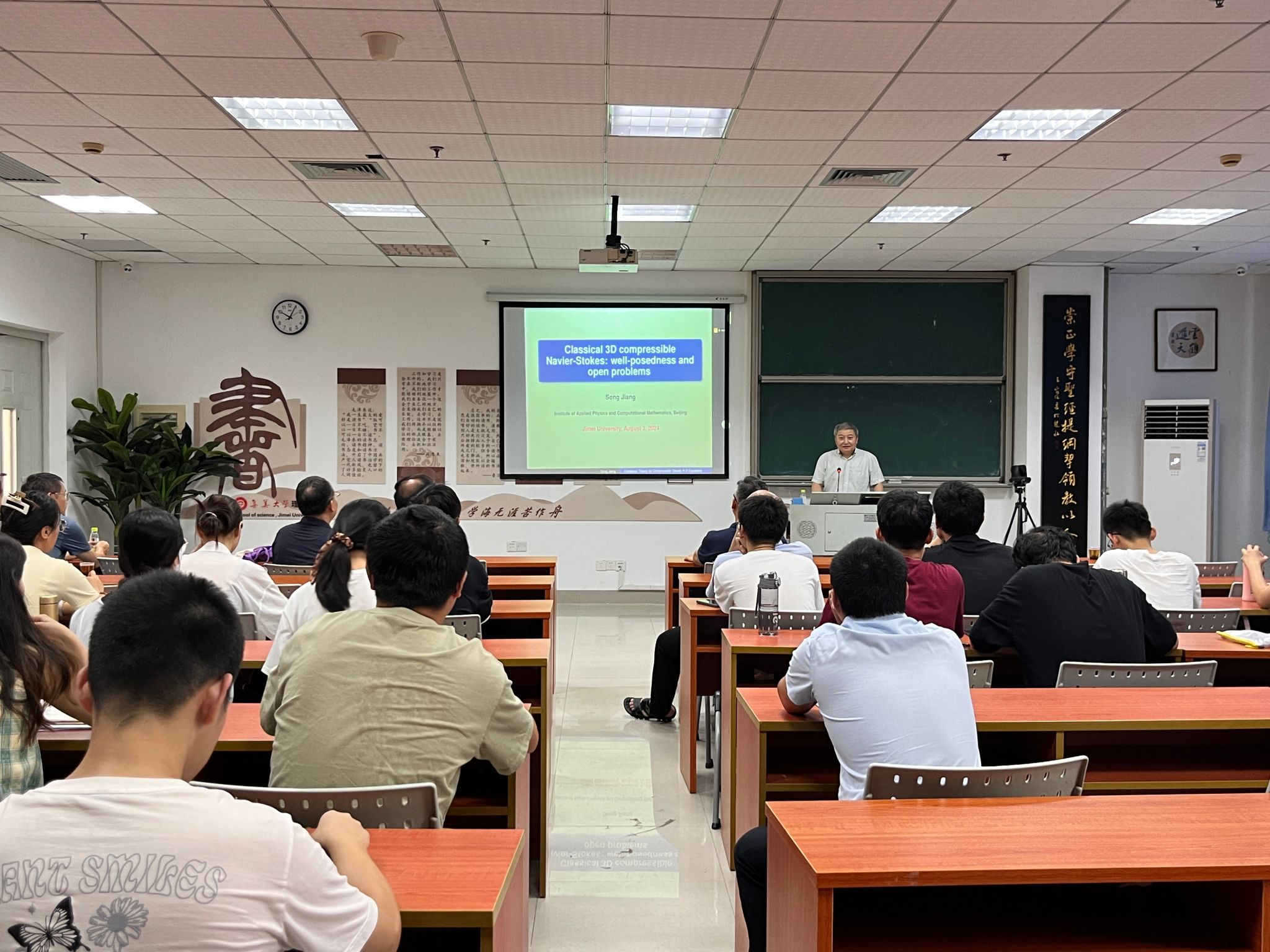 8月4日上午,中国科学院院士、北京应用物理与计算数学研究所江松教授莅临我校指导并作题为《经典高维可压缩Navier-Stokes方程:适定性理论与公开问题》学术报告,报告由王保祥教授主持,理学院教师和在校硕博士研究生参加。