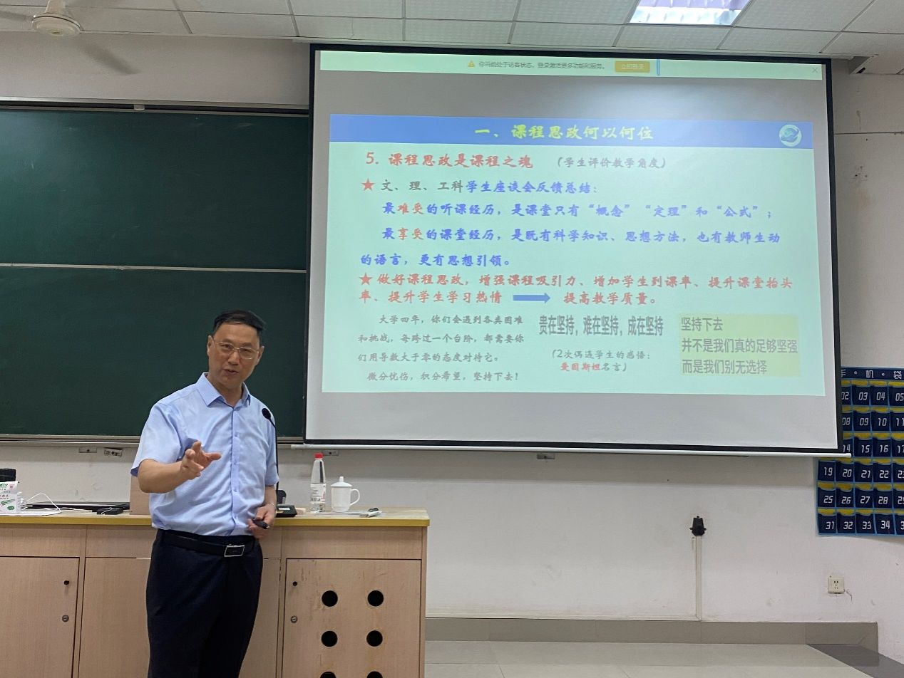 6月13日,理学院特邀南京信息工程大学王尧教授在建发楼304作题为“弘扬教育家精神,做新时代大先生—课程思政何位、何谓、何为”的报告,学院领导、师生代表及数学爱好者300余人参加。会议由谢加良教授主持。