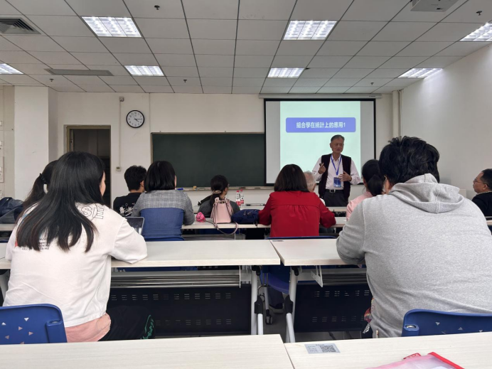 在报告中,叶永南教授用轻松幽默的语言介绍了组合学在统计、物理、化学等跨学科领域的应用。叶教授开门见山,介绍了机会博弈问题中一个反直觉的现象,表明运用组合学原理,当这两场比赛以适当的交替顺序进行时,两场失败的比赛可以变成一场胜利的比赛(在期望意义下)。之后,叶教授又生动形象的为我院师生介绍了组合学在物理学、以及Schur folw上的应用,给出某些问题的组合学证明。