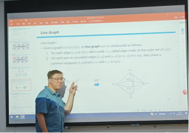 王老师首先介绍了完全独立生成树的基本概念和一些已有的文献结果,以及数据中心网络和线图的基本概念;然后介绍了基于线图数据中心网络来构造完全独立生成树;最后给出了在完全图的线图中构造最大完全独立生成树数目的算法。王老师在报告结束之后,与广大师生进行了热烈的讨论和交流,开拓了师生的视野,使大家受益匪浅。