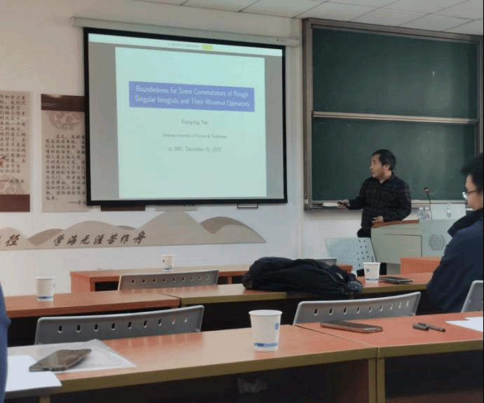 12月31日下午,浙江科技大学陶祥兴教授应邀为我院作了题为“Boundedness for Some Commutators of Rough Singular Integrals and Their Maximal Operators”的学术报告,报告会由郭炜超副教授主持。