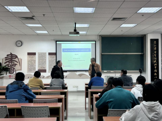 2023年12月26日下午,美国密西西比大学卫兵教授应邀给我们学院作题为“Bonds intersecting long paths in k-connected graphs”的学术报告,报告由晏卫根教授主持。