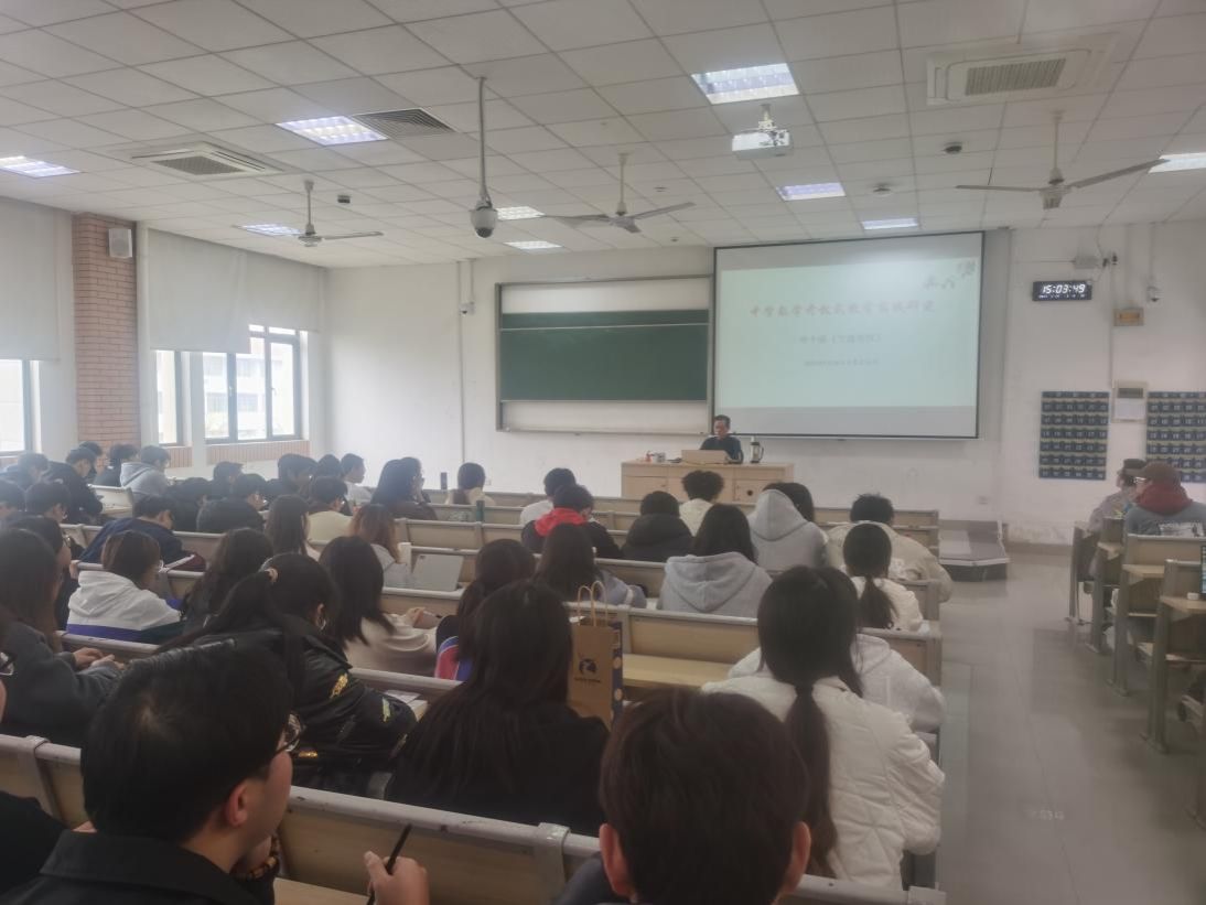讲座主要讲述了中学数学开放式教学的内涵及特征,开放式教学的一般步骤和趋势,以生动案例结合人工智能下的数学思维发展解读一个个实践,结合国培计划进行深入阐释,学生受益非浅。邱老师在报告结束之后,与广大师生们进行了热烈的讨论与交流,深受学生喜欢。
