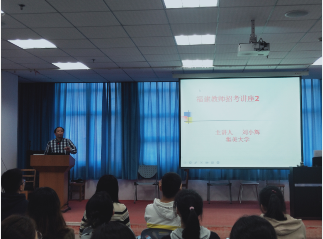 会上,刘小辉凭着积累的经验和丰富的阅历,详细介绍了教师招考笔试的内容范围、教材教法方面的备考准备,给同学们分析并讲解了笔试的题型,帮助同学们在考试中更全面地进行答题,并希望同学们注重培养自己的教师技能,将所学的理论知识与实际教学相结合。