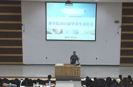 12月2日晚上,理学院在建发202召开2016届毕业生就业动员大会,院党委副书记王斌、学工干部及相关负责老师出席了本次大会。