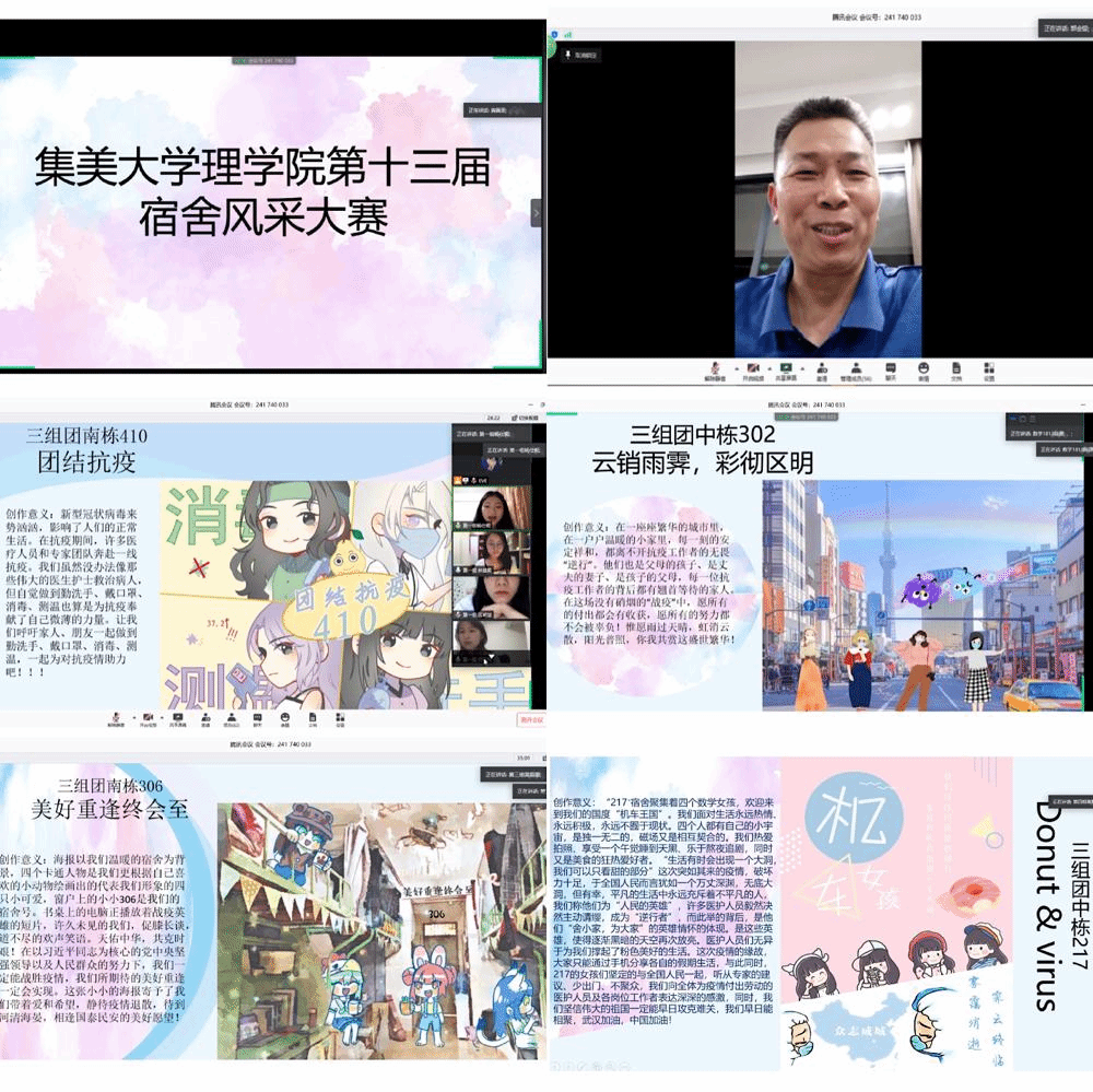 5月24日晚,理学院在线上举行了第十三届宿舍风采大赛决赛,院党委副书记郭金锭老师、院团委书记杨敏老师、院办公室主任陈諝老师、18级辅导员黄志松老师、19级辅导员刘俊老师作为嘉宾及评委老师莅临现场。