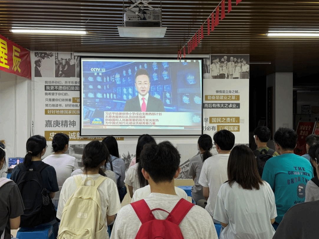 活动中,师生共同观看支教志愿者扎根边疆的纪实影像。视频生动展现了志愿者们克服艰苦条件、以教育助力民族团结的感人事迹,与习近平总书记回信中“将个人理想融入国家发展”的嘱托相互呼应,引发在场青年的强烈共鸣。