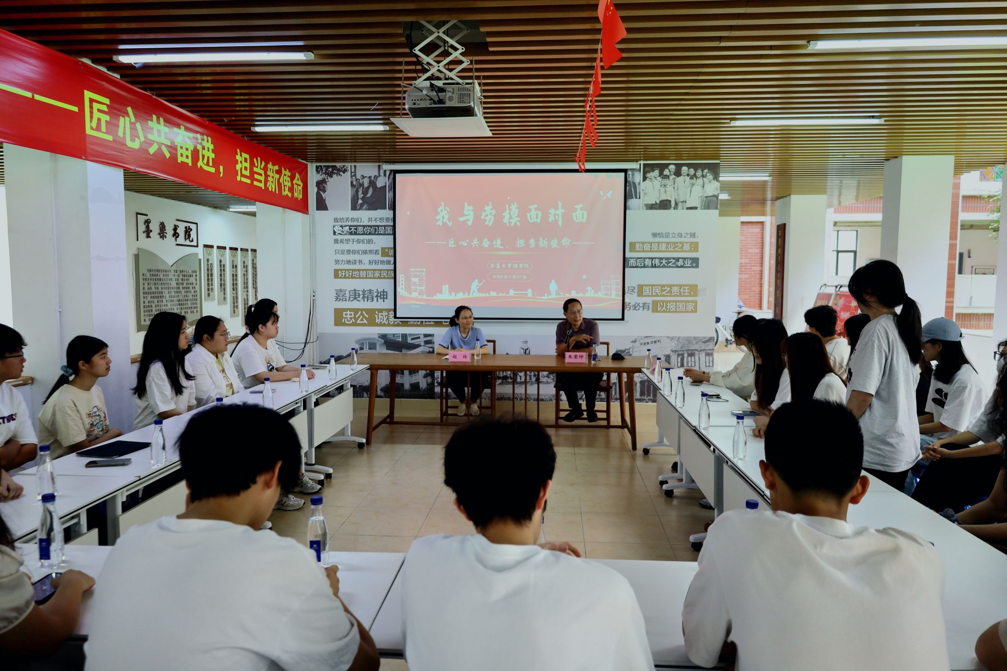 长期扎根教学一线、曾获“我最喜爱教师”荣誉称号的朱荣坤教授以“三尺讲台的匠心传承”为主题,分享了他深耕本科教育数十年、创新教学方法的故事。省五一劳动奖章获得者赵玲副教授启发同学们要以史为鉴、以廉为棱,守住人生的中心线,展现新时代青年敢闯敢拼的风采。在互动环节,同学们围绕职业选择、个人成长等话题踊跃提问,老师们结合自身经验逐一解答,现场气氛热烈,掌声不断。同学们纷纷表示,在今后的学习和工作中要以劳模工匠为榜样,努力追求卓越。