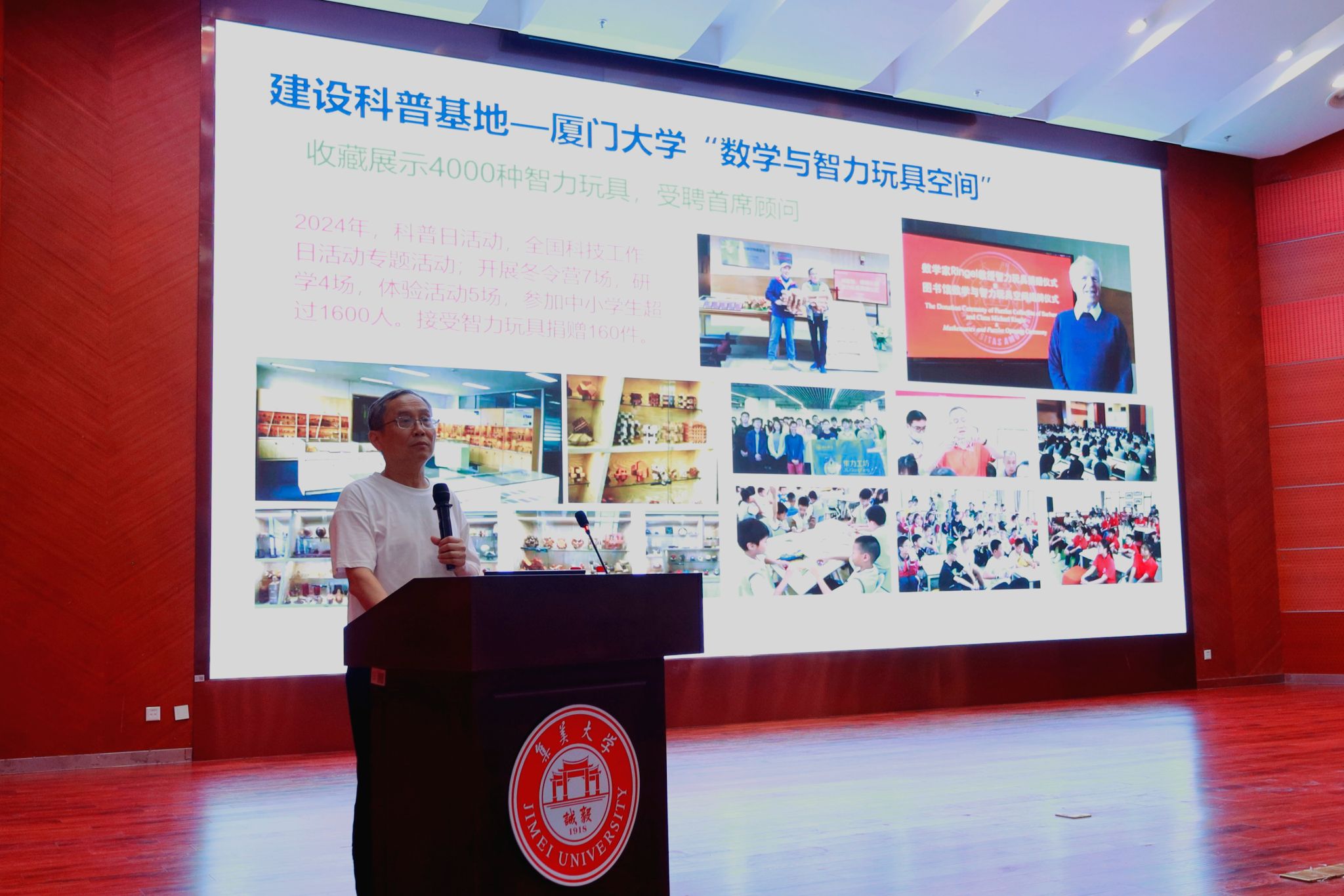 林亚南教授围绕对称图形的数学原理展开,详细讲解了轴对称、旋转对称等概念,探讨了对称图形在小学数学教育中的应用,并介绍了中国科技馆和厦门大学在对称图形教学中的创新实践。最后,他勉励在场学生,要用心“品味”数学之“美”与科学之“道”,感悟其中蕴含的理性精神和探索乐趣,不断提升自身的科学素养和创新能力。
