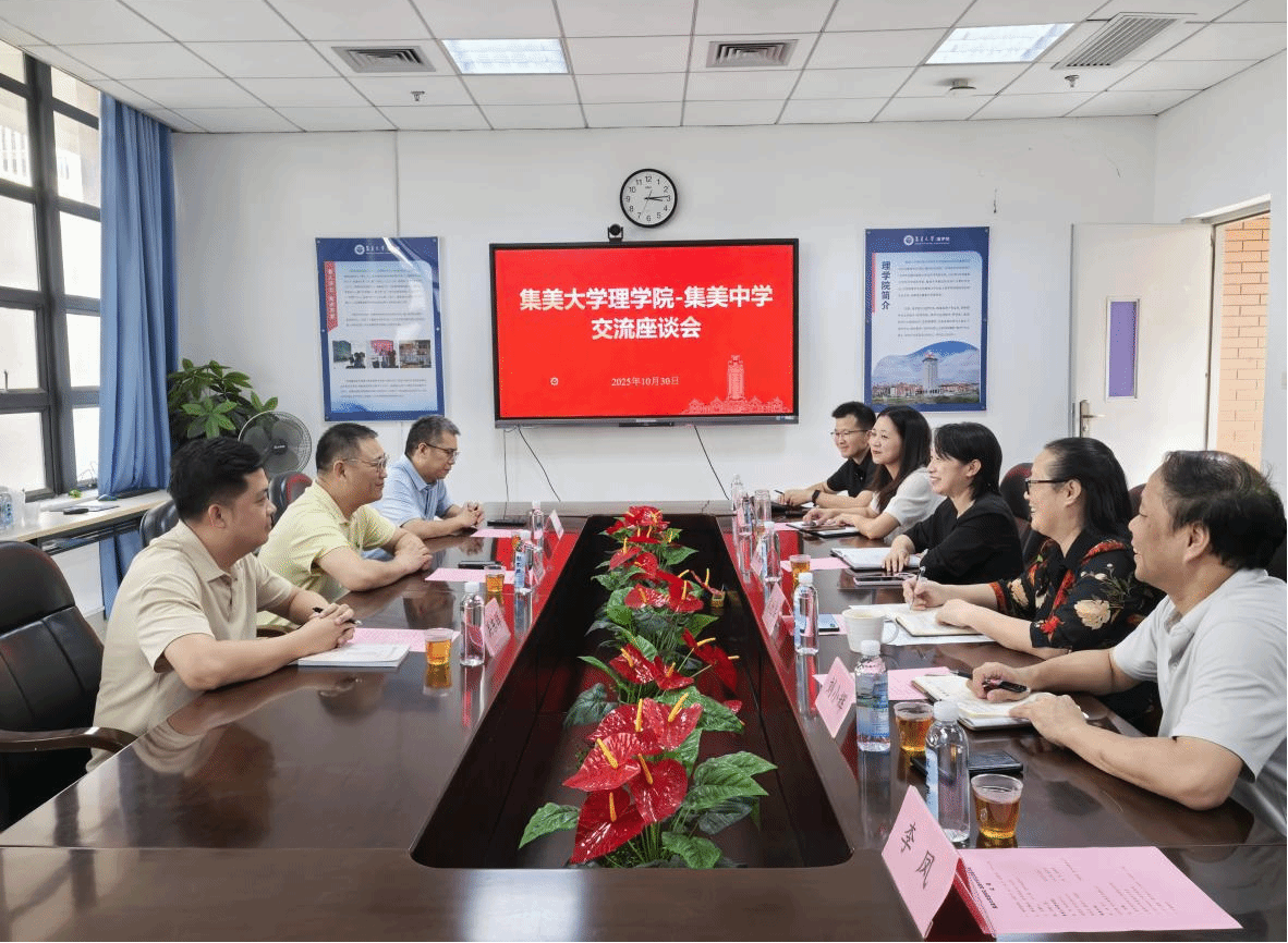 近日,集美中学校长黄雄带领校办主任、教务处负责人一行到访理学院。学院领导及相关教师参加座谈,双方围绕人才培养、大中小数学一体化建设及数学拔尖人才培养等议题展开深入交流。