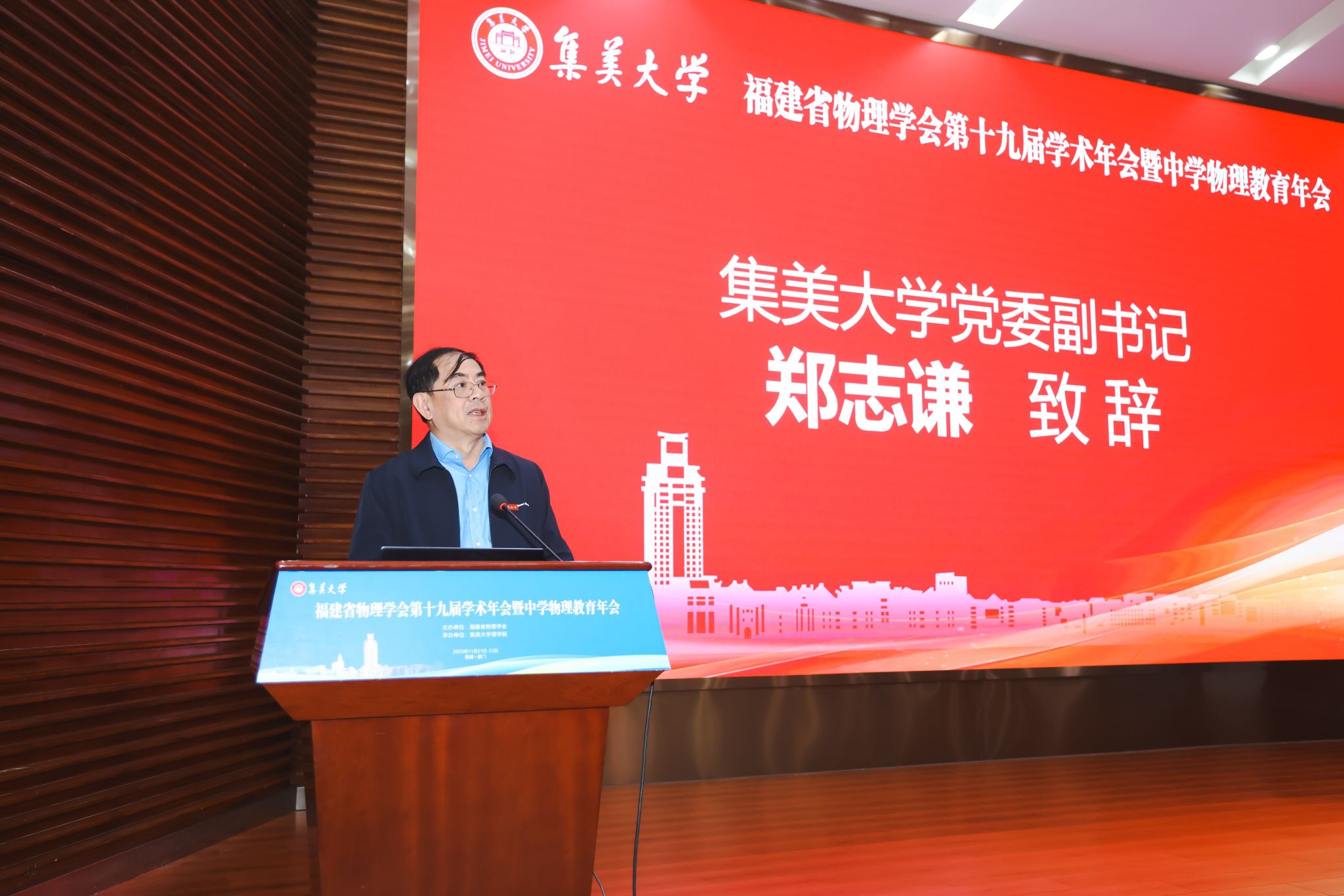 校党委副书记郑志谦在致辞中介绍了我校基础学科建设、人才培养及科研创新成果,他强调本次年会为学校搭建了重要学术交流平台,助力学科发展与基础教育协同进步;福建省物理学会理事长黄志高教授致感谢辞,并介绍了省物理学会主要工作及已取得的成果。