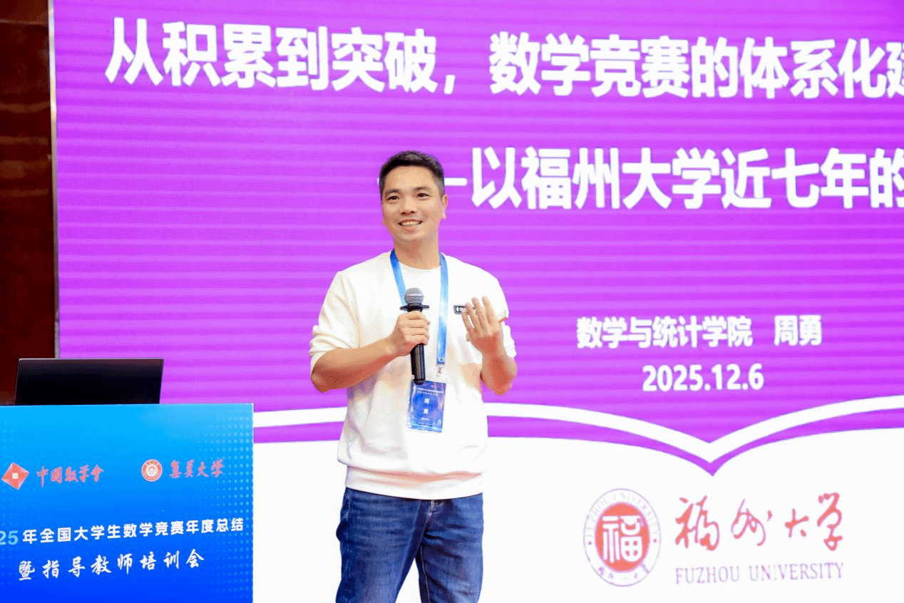 12月5日至8日,2025年全国大学生数学竞赛年度总结暨指导教师培训会成功举行。本次会议由中国数学会指导,全国大学生数学竞赛工作组主办,我校承办,莆田学院和福建省数学学会联合协办。