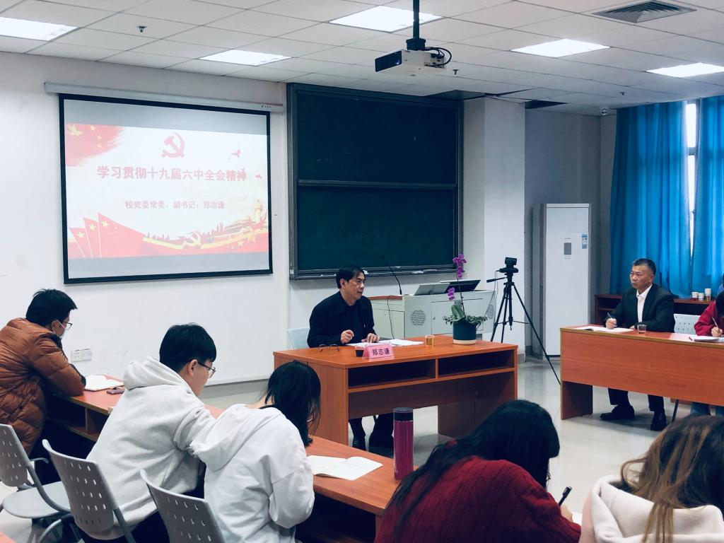 12月23日,集美大学党委常委、副书记郑志谦来到理学院做学习贯彻党的十九届六中全会精神宣讲报告,报告由院党委副书记郭金锭主持,院党委书记吴连星及部分师生代表参加此次宣讲报告。