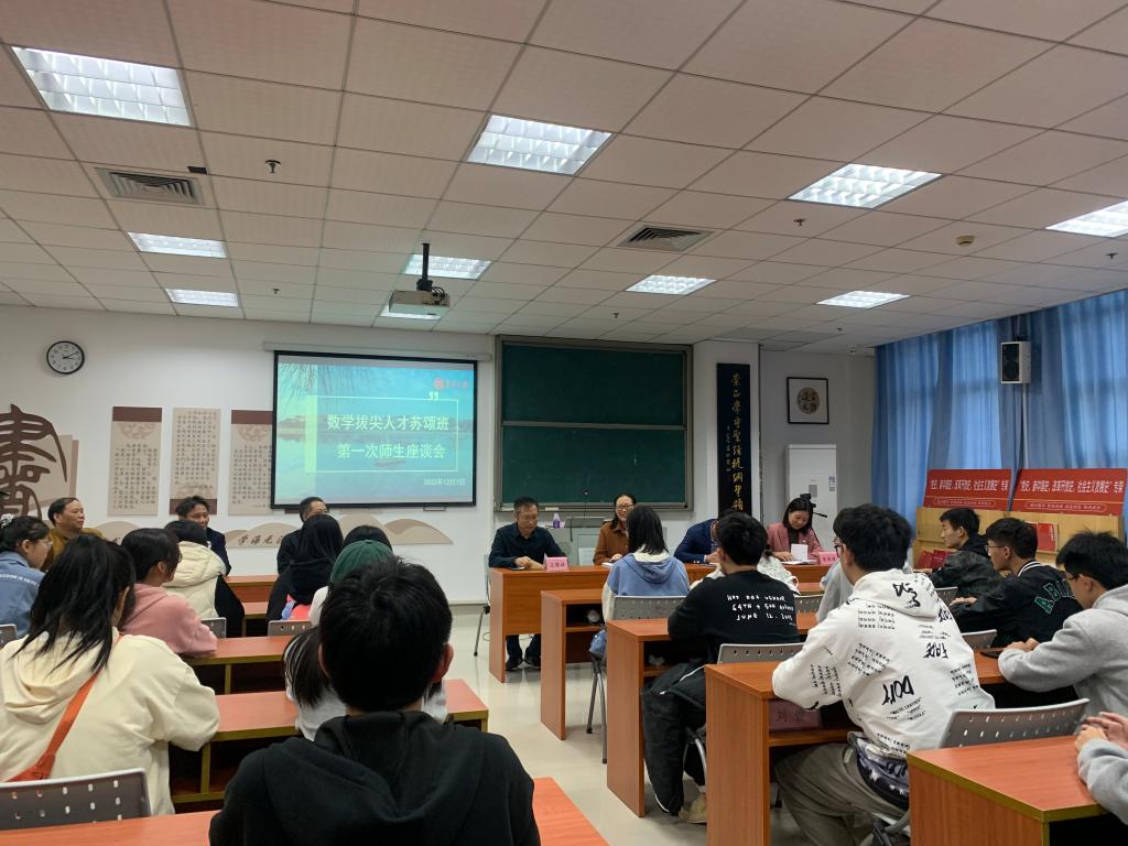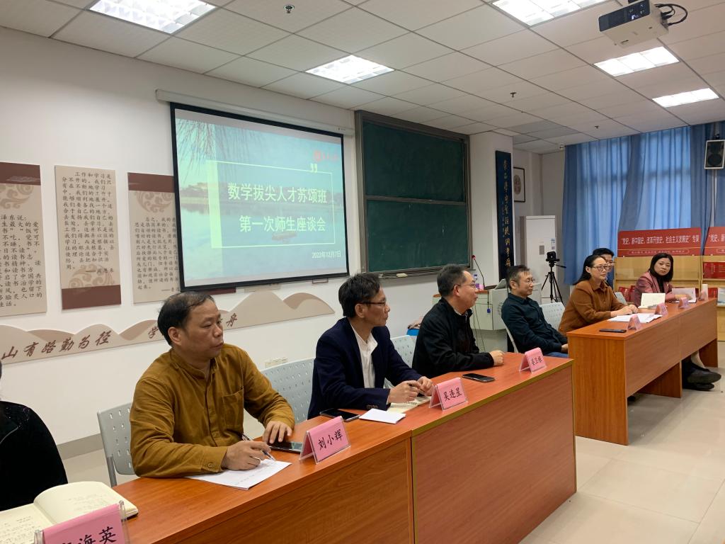 2022年12月7日下午,理学院在陈章辉楼442召开首届“数学拔尖人才苏颂班”师生座谈会。学院党委书记吴连星、院长宾红华、党委副书记裴园园、副院长刘小辉、王保祥教授、晏卫根教授、谢加良教授、教学科高海英,以及苏颂班全体学生出席座谈会。会议由辅导员陈佳琳主持。