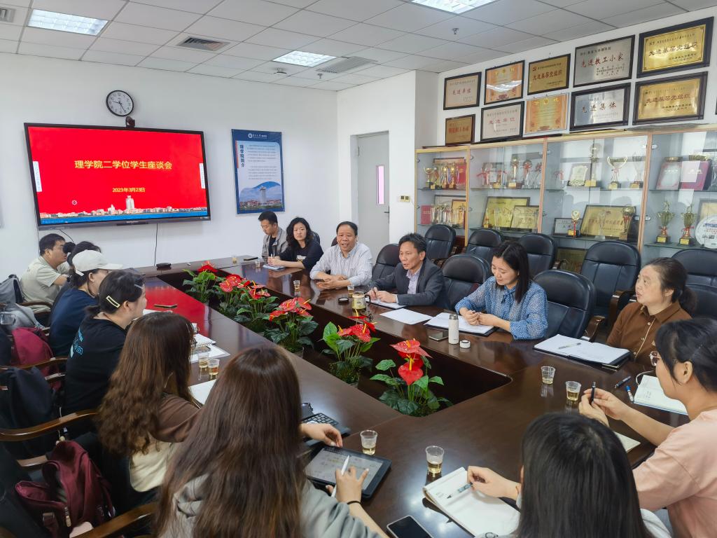 2023年3月23日,理学院召开数学与应用数学(师范类)第二学位学生座谈会。学院党委书记吴连星、副院长刘小辉、党委副书记裴园园、教学秘书高海英及辅导员和22级第二学位学生代表参加了本次座谈。