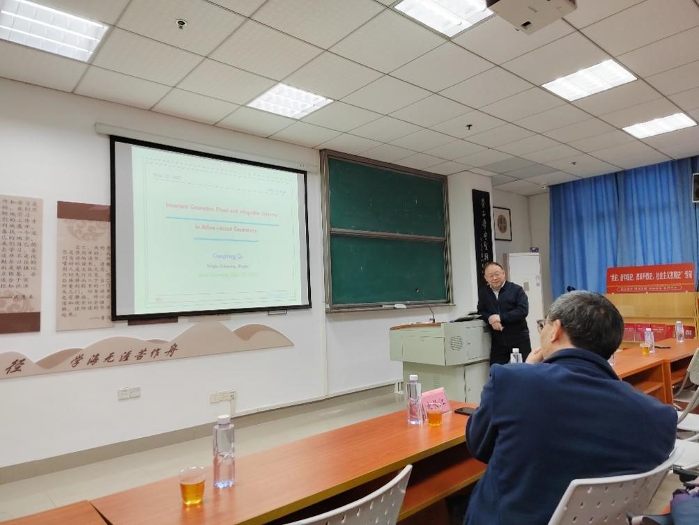 宁波大学屈长征教授所作题为“Geometric Aspects of Integrable Systems”的报告对所涉及问题按几何结构进行了分门别类的介绍,向听众展示了问题的研究方法与复杂程度,鼓励在座的青年教师和学生积极从事相关的研究工作。