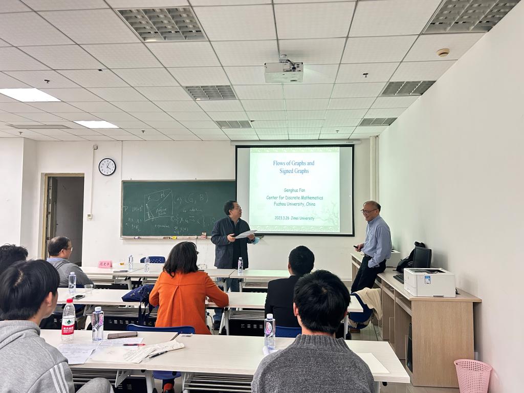 组合图论研究团队邀请向青教授、范更华教授莅临集美大学,他们在陈章辉楼441会议室为我院组合图论方向师生带来了题为“Graphs and Codes from Linear Representations of Finite Geometries”和“Flows of Graphs and Signed Graphs”的学术报告。