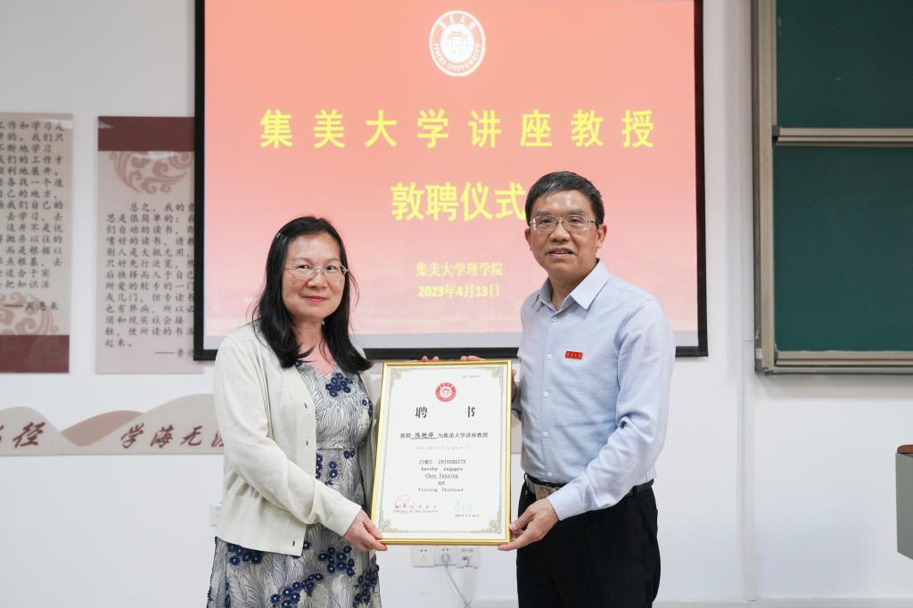 4月13日下午,我院在陈章辉楼442会议室举行讲座教授敦聘仪式,聘任哈尔滨工业大学魏俊杰教授、华南师范大学陈艳萍教授为集美大学讲座教授,校长李清彪和我院师生代表参加了活动。