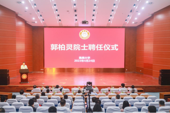 4月24日下午,我校举行郭柏灵院士聘任仪式。聘任仪式由校党委书记沈灿煌主持。校党委副书记、校长李清彪向郭柏灵院士颁发聘书。全体校领导、全校副处级以上干部、师生代表参加了聘任仪式。