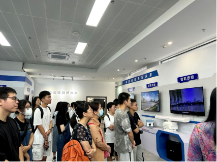 首先,负责人员热情地带领学院师生参观智能展厅,详细介绍集团智慧城市、智慧交通、智慧管廊、智慧园区等产品及解决方案,讲解集团利用AI算法、计算机视觉等技术在公共安全领域等多行业的创新研发和实战应用,让大家深入了解了罗普特公司多项技术研究。