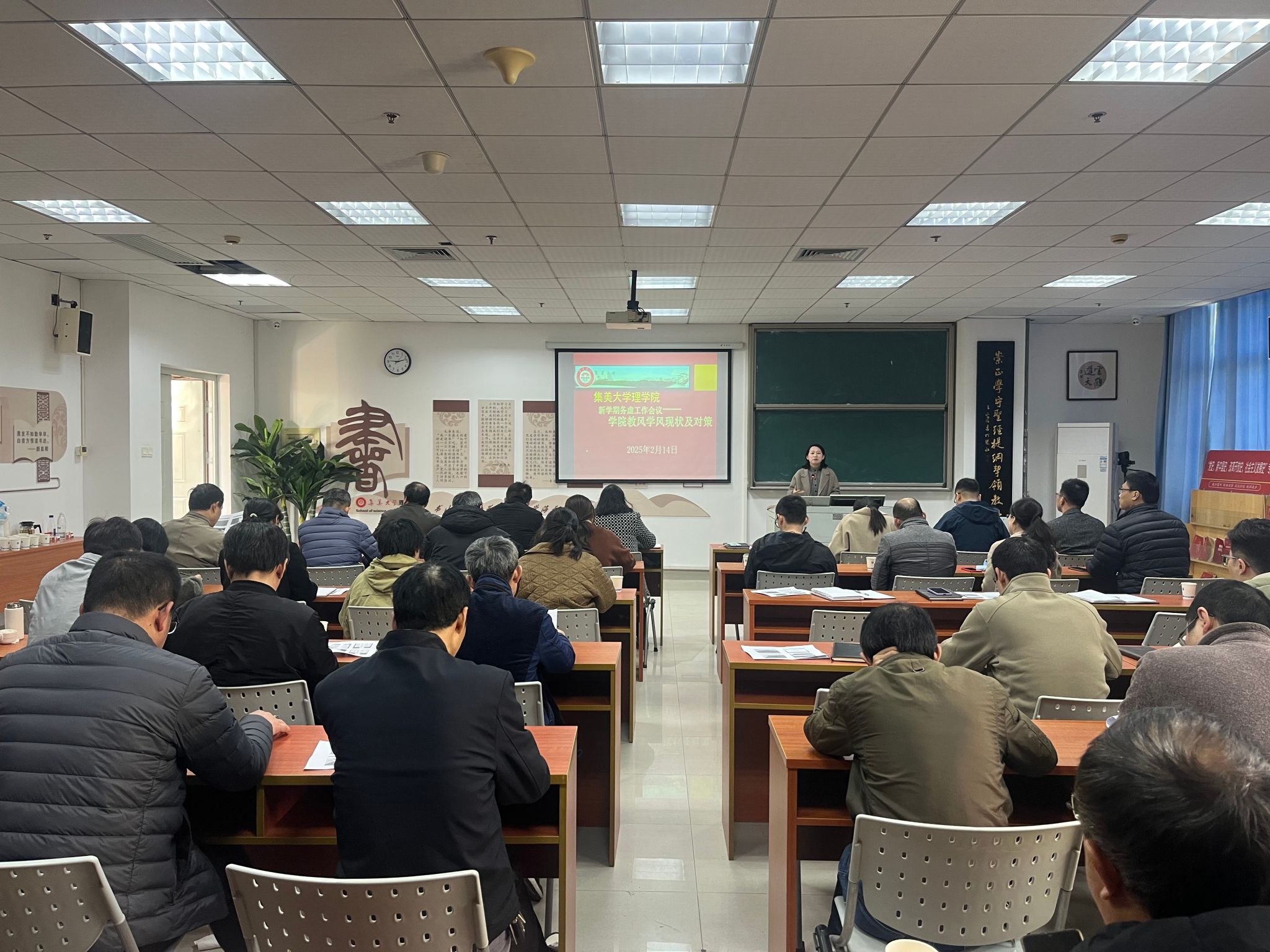 随后,各分管院领导结合分管领域和工作实际,就本科教育教学审核评估、数学和物理学科建设、科研团队发展等关键议题作专题报告。报告内容详实,数据充分,总结了过去的不足与经验,对学院2025年工作的发展思路和谋篇布局进行了交流和展望。与会人员就学院发展中的问题进行了深入的讨论和交流。