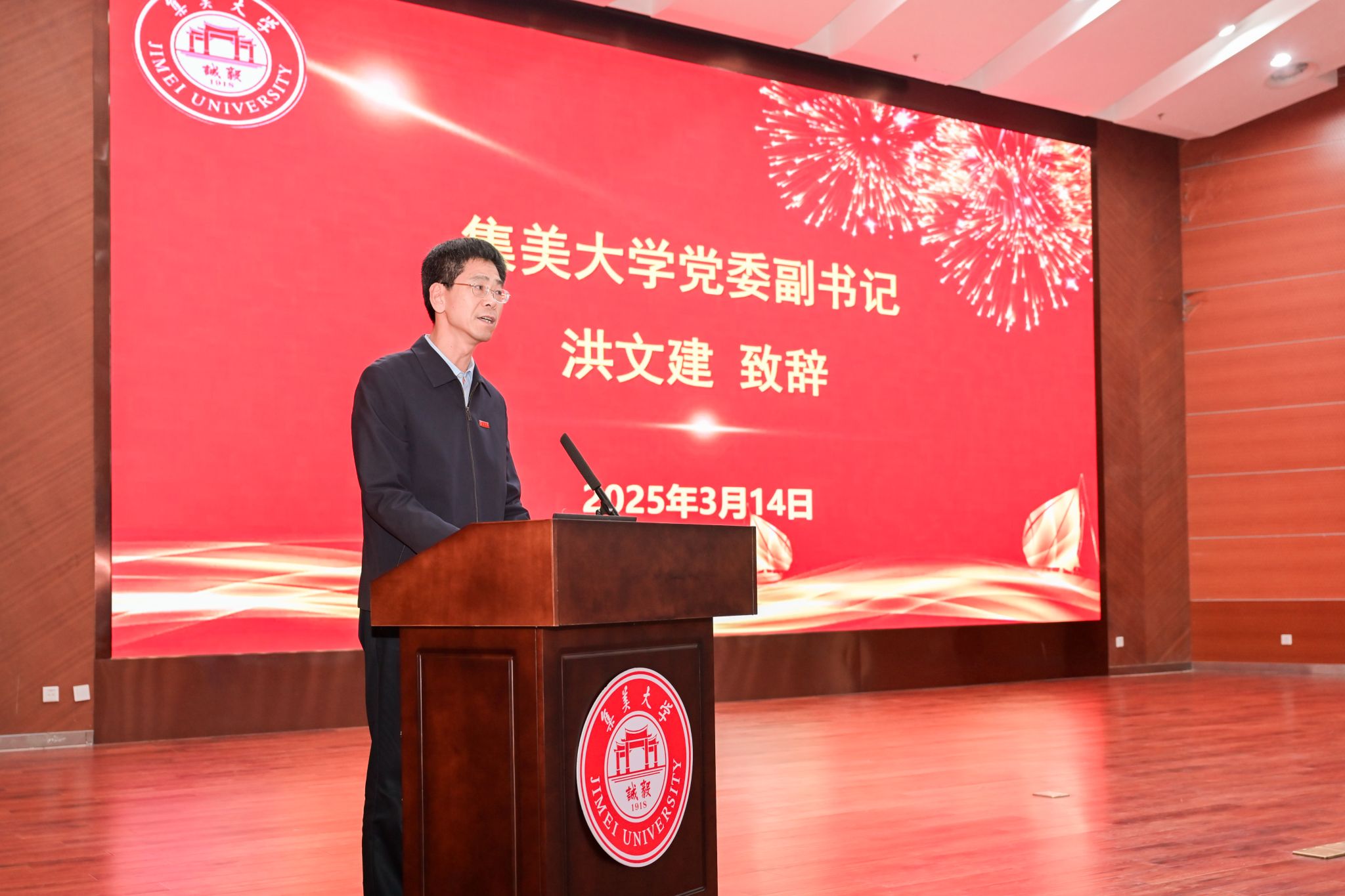 3月14日,国际数学日当天,集美大学首届数学文化节在尚大楼105报告厅拉开帷幕。本届文化节以“发现数学之美,助力‘工海’强校”为主题,打造沉浸式数学文化体验平台。集美大学党委副书记洪文建,学校部分职能部门负责人以及500余名师生代表参加开幕式。