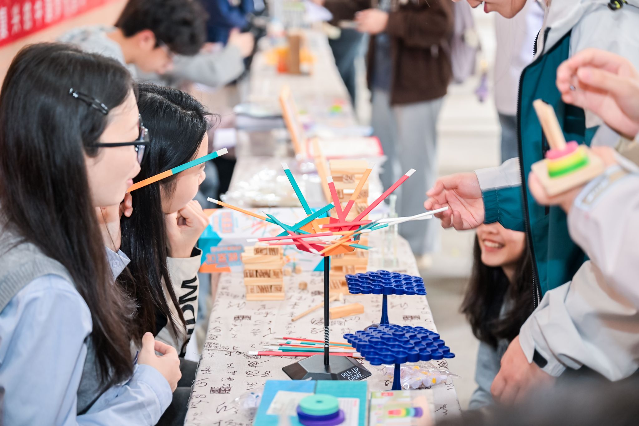 举办“趣玩数学”游园会,科创社团展览、数学游戏互动、动力小车表演吸引了不少师生驻足观看。大家在数独、华容道、平衡棋、空间四子棋、汉诺塔、STEAM游戏中感受数学的独特魅力,领略数学与科技的完美融合。