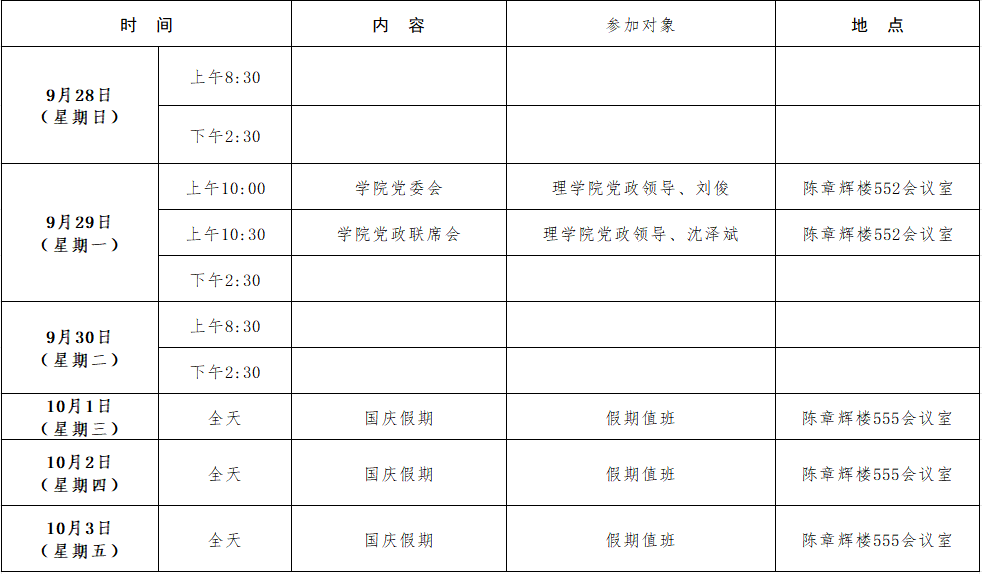 集美大学理学院2025-2026学年上学期第4周会议安排表