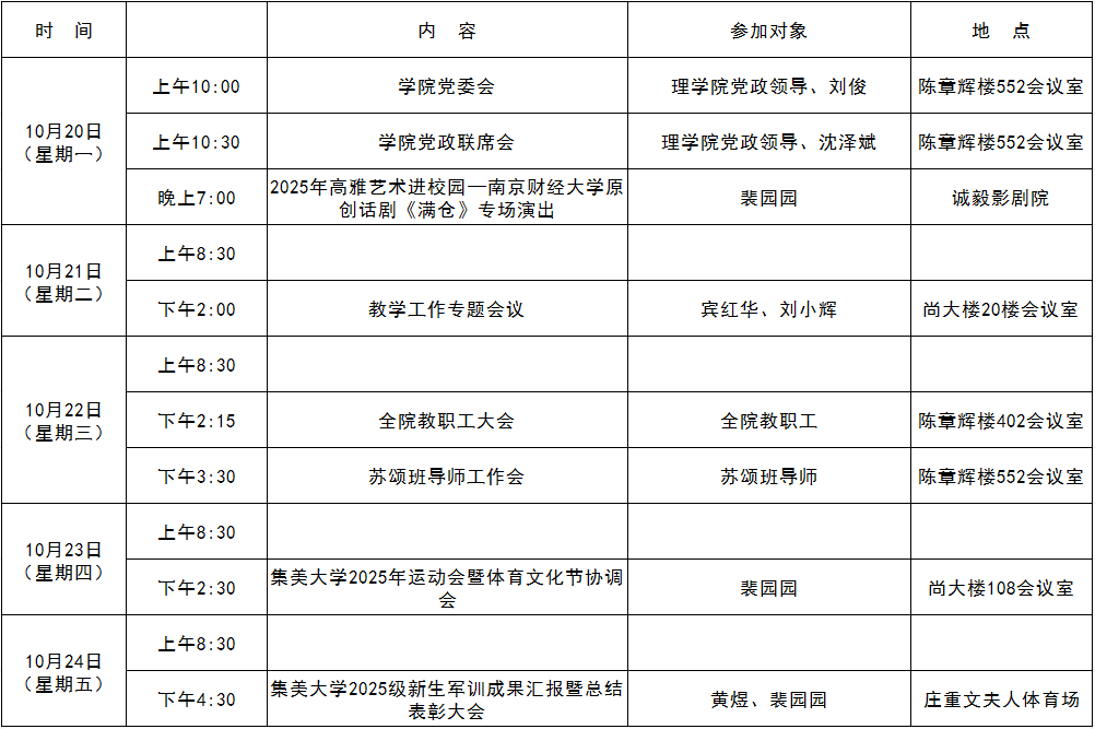 集美大学理学院2025-2026学年上学期第7周会议安排表