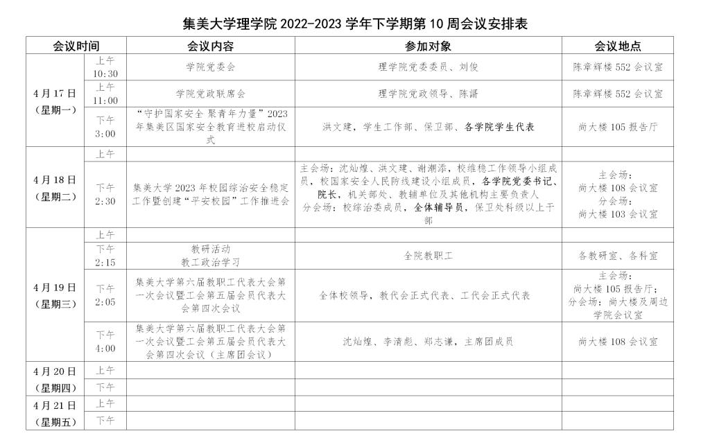 上一篇:理学院2022-2023学年下学期第11周会议安排表