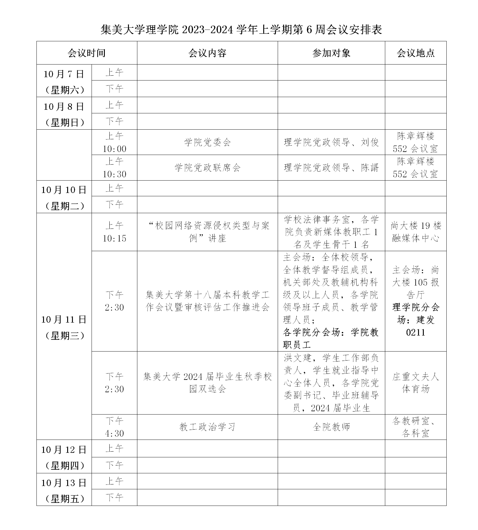 下一篇:集美大学理学院2023-2024学年上学期第4、5周会议安排表