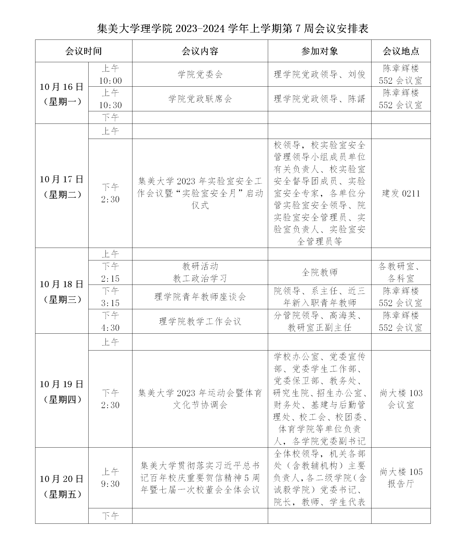 下一篇:集美大学理学院2023-2024学年上学期第6周会议安排表