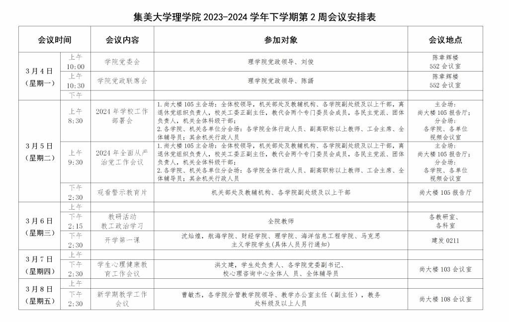 下一篇:集美大学理学院2023-2024学年下学期第1周会议安排表