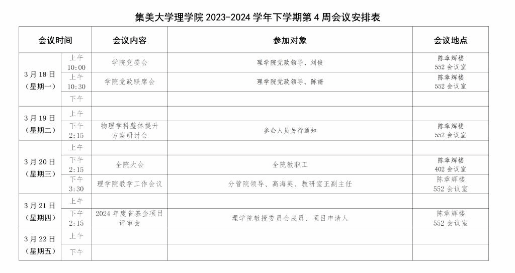 下一篇:集美大学理学院2023-2024学年下学期第3周会议安排表