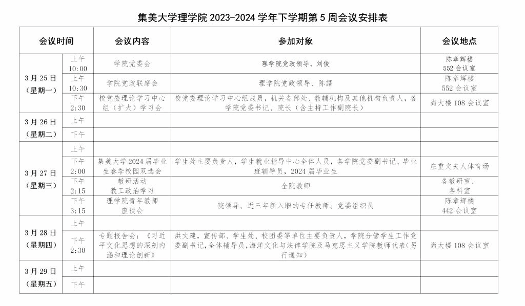 下一篇:集美大学理学院2023-2024学年下学期第4周会议安排表